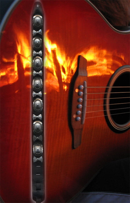 Phat as in extra wide leather concho guitar strap with your choice of conchos. Our guitar straps are black oil tanned Latigo leather. Exceptionally soft and smooth leather, supple yet durable.